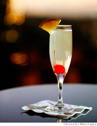 The first three ingredients (with a splash of grenadine if handy) should be shaken in a cocktail shaker half full of ice, strained into a Champagne flute and topped with ice. A few blueberries can be added for a fruity lift. The one for an elegant soiree.